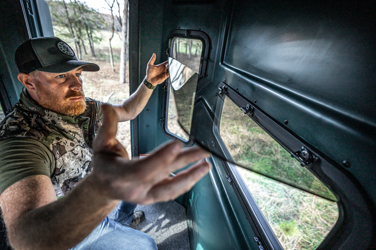 - Different blind configurations. Our rifle blind has horizontal windows or our Combo blind comes equipped with both horizontal and vertical windows for archery and rifle hunting